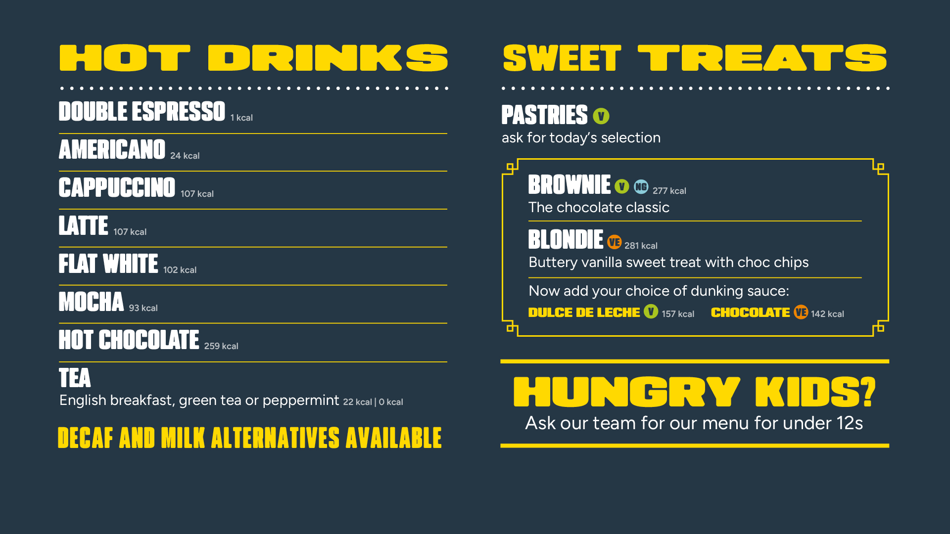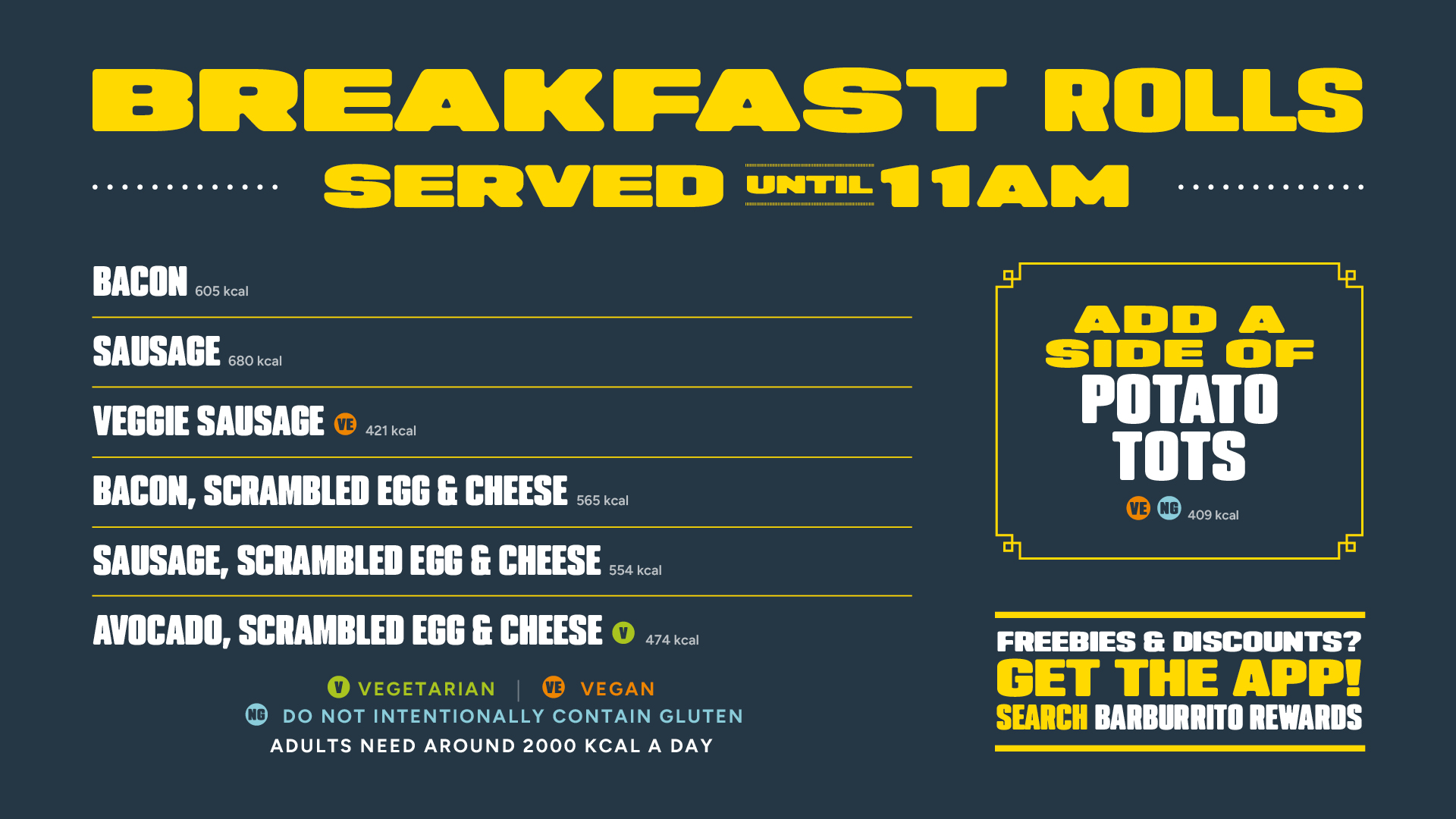 BREAKFAST IS SERVED IN AIRPORT STORES ONLY. NOT ALL OF OUR MENUS ARE THE SAME, PLEASE ASK IN STORE OR EMAIL FOR VARIATIONS.
